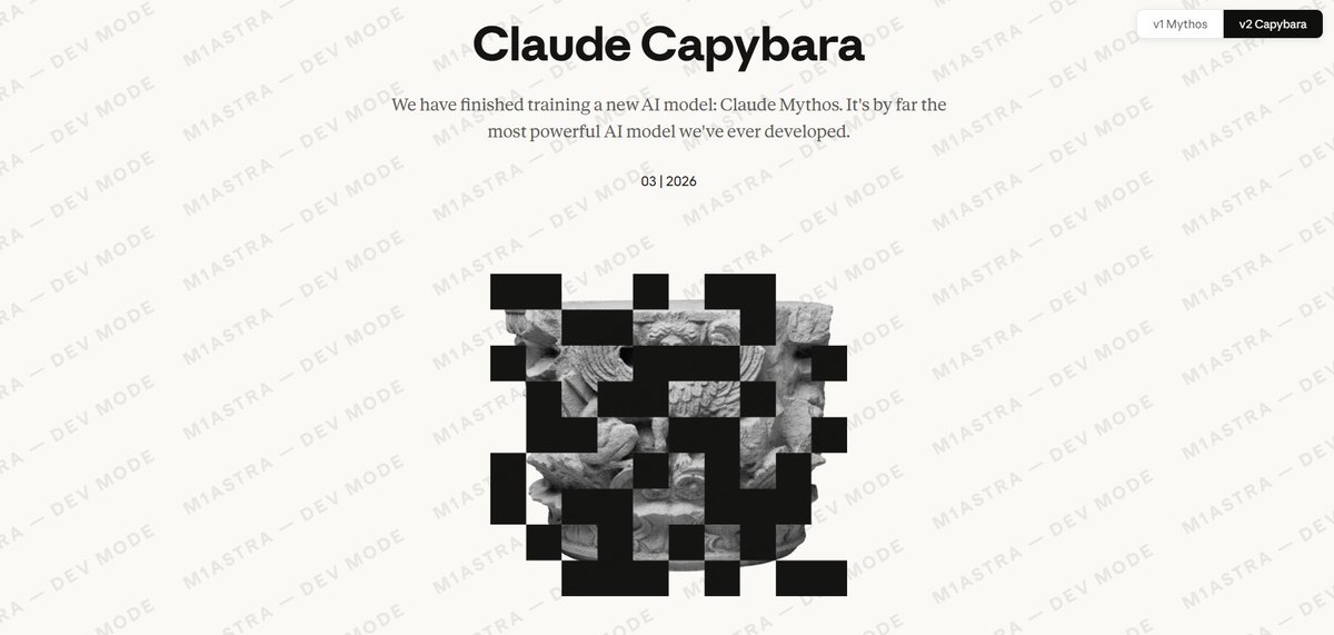 Inside: two versions of the same draft blog post, identical in every way except one thing – the model’s name. “Mythos” in one. “Capybara” in the other. Anthropic was deciding between two names for the same secret project. The company confirmed: training is complete, the model is already being tested with early access customers.