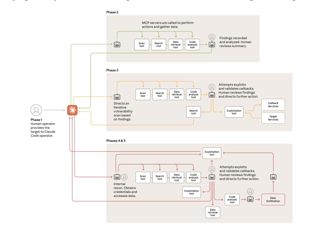 The split: humans chose targets and approved key decisions. That’s it. 4-6 interventions per entire campaign. The AI handled everything else – reconnaissance, finding vulnerabilities, writing exploits, stealing data, creating backdoors. 80-90% of the attack. Thousands of requests per second. A speed no human team could ever match.